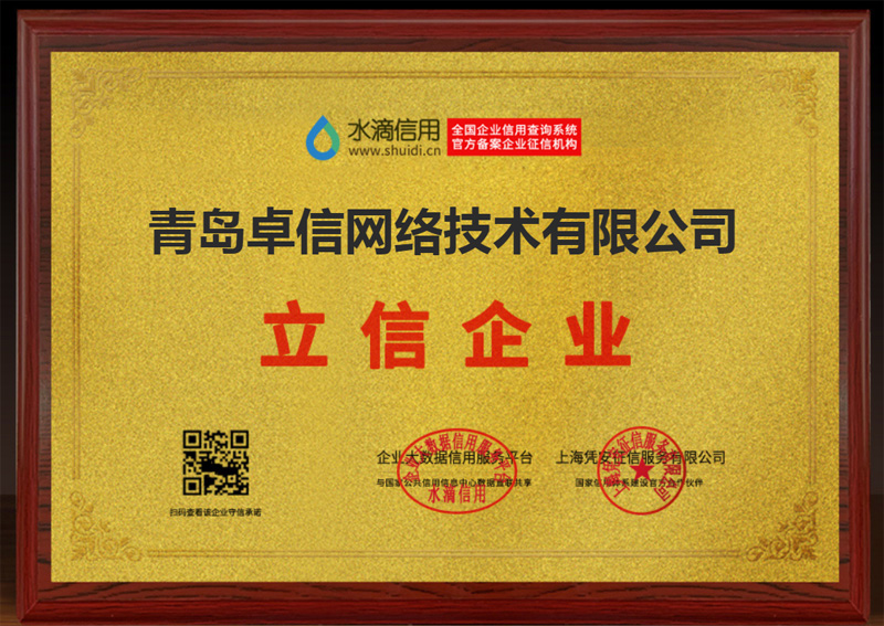 本公司被中國企業(yè)信用檔案庫收錄,授立信企業(yè)牌匾,卓爾不凡信誠天下...